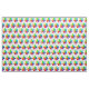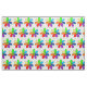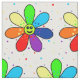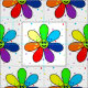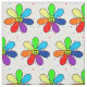 A tiled pattern of a rainbow flower on a colourful dotty background.