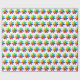 A tiled pattern of rainbow flowers on a colourful dotty background.