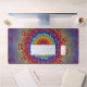 Add a burst of spectrum-spanning color to your office with this vibrant rainbow fractal flower desk mat. This intricate design features concentric layers of "petals" in every shade—from fiery reds and oranges to cool greens, blues, and deep purples. The kaleidoscope-style symmetry creates a focal point that is both energizing and harmoniously balanced.