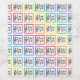 Abstract digital art of rainbow outlined squares with a treble clef, staff and a few musical notes inside each one against a white background.