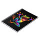 This vibrant sticker features a joyful, multi-colored frog with bright green eyes and orange feet, leaping with its mouth open. Its psychedelic rainbow pattern makes it perfect for adding fun, energy, and a splash of color to any design.