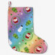 Modern and trendy cute green frog with white snowmen, candy canes, green christmas trees, snowflakes, red and green polka dots pattern and a super cute santa claus in green circles with a rainbow background. Cute frog gift ideas for women and girls. Ideal for christmas presents. Customise it with your personal words and pictures/photos.