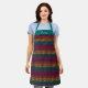 Colourful rainbow gingham pattern custom name apron. Personalise the script font with name or message. Makes a great gift for anyone! Perfect for cooking at home, hosting bbq, cooking or wine classes, arts and crafts, holiday parties, tending bar, and special events.