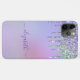 Cute girly phone case featuring rainbow purple and green faux dripping glitter against a purple background. Personalise with a name in a trendy purple script.