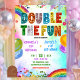 Rainbow Glitter Sequin Sibling Birthday Invitation, colorful Joint Birthday Invitation, Double The Fun Siblings Birthday Invite, Editable Double Birthday