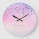 Rainbow glitter sparkle script modern girly script large clock