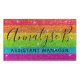Colourful rainbow stripes sparkle beautifully. Faux glitter effect is fun and makes a statement. Easily update the chalkboard script name and professional job title template. Available in many other styles and colours.