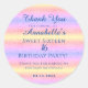 Thank Your Guest this lovely Rainbow Glitter Sweet 16 Sixteen Birthday Thank You Classic Round Sticker! A fun party favour and keepsake! Cool colours and a hint of sparkle that makes your daughter's party a memorable event! A soft pastel rainbow of sweet pink, purple, blue, and yellow! Mix and match all of your favourite party supplies from Up On the Mountain!