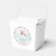 Celebrate your little one's magical birthday with this personalized takeaway favor box. Featuring cute rainbow unicorn with glittery wings and sparkly stars in soft pastel colors. Perfect for unicorn lovers.