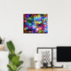 Multicolored light dominate this bright abstract design. Made with rainbow colours on a black background this artwork will bring some colour in your home.