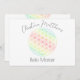 This business card features a simple and elegant white background with a large image of the flower of life printed in the centre. The beautiful sacred geometry symbol is designed in a rainbow gradient pattern. A sample name it printed above the symbol in an elegant script font. A sample job title of Reiki Master is printed below.