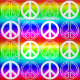 White peace signs and peace sign outlines on a rainbow gradient background pattern design by Holiday Hearts Designs (all rights reserved). Available in a variety of colors.