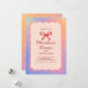 Invite your guests with this stunning Rainbow Gradient Red Bow Christmas Dinner Invitation, featuring a dreamy multicolor background that transitions beautifully from turquoise blue through purple, pink, and coral to golden yellow. The elegant cream scalloped frame provides the perfect contrast for your event details, while the sophisticated red satin bow adds a classic festive touch. This modern take on Christmas design appeals to hosts who love vibrant colours and contemporary aesthetics. Perfect for LGBTQ+ friendly celebrations, inclusive holiday gatherings, or anyone seeking a joyful, colourful alternative to traditional Christmas themes. The gradient background creates a magical, ethereal atmosphere that photographs beautifully and sets a cheerful tone for your celebration. Fully customisable with your event details for an unforgettable holiday dinner.