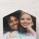 Cute and romantic all in one wedding invitation for a gay wedding or lesbian wedding or lgbtqa wedding where love is love is written in a cute and charming script and coloured with a rainbow gradient and the wedding wording is written in rainbow colours.