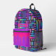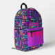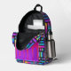 Make a bold statement with this eye-catching backpack featuring a neon rainbow grid design with black outlines and a personalised name badge. The front pocket adds extra flair with a vivid pink and purple drip pattern, perfect for standing out in style. Spacious, durable, and fun—ideal for school, travel, or everyday adventures.