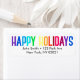 "Happy Holidays!" A colourful Holiday greeting in a modern font in rainbow colours. Easy to customise with your name and address. Part of our Rainbow Holiday Collection.