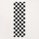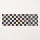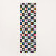 An on-trend black and white chequerboard patterned yoga mat with a rainbow of coloured hearts on one side and plain black and white on the other for that retro cool skater vibe with a girly twist.
