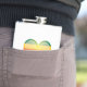 Well made flask, a little better than I had expected. Flask came in clear plastic box which gave it a nice presentation when I took it out of the zazzle packaging. Image is not printed on flask but on sticker. Don't know how this will hold up I haven't used it yet. This would make a Great gift! I plan to purchase more for friends! Cheers. I thought a little brighter than computer. Very crisp, writing wasn't