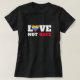 “Love not hate”. Stand proud and let the world know how good this country is and can be with this thoughtful, striking, graphic, patriotic, t-shirt. A rainbow heart with white and red typography against a black background boldly relay this message. Proudly take a stand in what you believe!