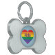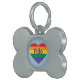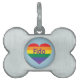 This pet tag features a heart with a rainbow stripe design. From the heart's top to bottom are stripes of red, orange, yellow, green, blue, and purple. Show your true colours, support marriage equality, and celebrate gay pride.
