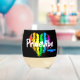 Celebrate love and inclusivity with every sip from this stylish Rainbow Heart PrideVibe stemless wine glass by Sarendestini Designs. Featuring the colourful PrideVibe logo against a sleek black background, this elegant glass is perfect for casual drinks, special occasions, or as a unique pride keepsake. Sip in style and show your support for the LGBTQ+ community with this bold and vibrant design.