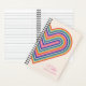 A colourful rainbow heart is the main focus of this spiral-bound notebook. There is space to customise the design in the lower right-hand corner. The back of the journal features a coordinating pattern of red, pink, blue, yellow, and green stripes. This design would be perfect for a young girl, perhaps as a birthday or Valentine's Day gift!