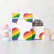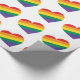 This wrapping paper features a repeating pattern of rainbow stripe hearts on a white background. Show your true colours, support marriage equality, and celebrate gay pride.