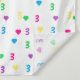 Colourful 3rd birthday with hearts in bright and vibrant rainbow colours: Pink, blue, purple, green and yellow.