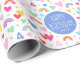Rainbow Hearts 4th Birthday Custom Name Blue Wrapping Paper