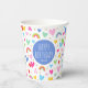 Rainbow Hearts 4th Birthday Party Custom Name Blue Paper Cups