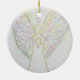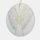 An angel has wings folded to create a heart shaped outline. The feathers of the angel's wings also form heart shapes. There is a heart on the angel's chest and a heart hovering over the angel's head like a halo. Watercolor painting of a pastel rainbow angel. Painting was rendered with watercolor pencil on paper. This is a great guardian angel picture to use for the holidays like Christmas or New Year's. Personalise with your own text and images using the "Customise It" option. Make personalised guardian angel gifts, charms, and other ornaments.