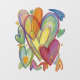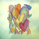 A single large heart is in the centre surrounded by a rainbow of colourful hearts. The art is a tribute to the healing power of giving and receiving inspired love in our lives. The art was created using watercolor pencils and paint on paper. Inspirational artwork by Laurel Latto for DonnaBellas Angels.