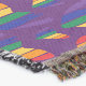 A quality printed throw has its advantages. This is a much finer weave throw than its loopier cousins, and though lighter, it is worth the investment for custom room accessorizing. The back is much prettier than the typical brown, and the fringe on the long sides very vivid, the selvage nicely done. Before photographing, I washed the throw in cold water, delicate, with a thicker woven throw the same size. On tumble dry low, this throw was dry in half the time as the other. This is a very practical quality if you use throws for furniture covers or to wrap up in frequently. The sleekness of the fabric makes it a great layer for accenting or protecting without the feeling of sitting on too much stuff. Perfect for napping or when you feel a light chill coming on. The color printing is beautiful and on this fabric, matched the design and color of my Photoshop image. This is an advantage for blending room fabrics and colors. The fringe on the short sides prints the colors from the design image and therefore varies from the side fringe. I streaked a white fractal line through the plaid pattern to give the illusion of weaving. This printed as crisp as an illusory thread, and put some white in the short side fringe, showing another advantage of print vs loomed- for artistic purposes, line lines, detail, and color integrity can be planned and preserved. My loomed throws have color limitations and more of a needlepoint texture. Print throws reproduce an exact image. The throw felt a little stiff straight out of the package, but this went away in the first delicate wash. Of course I searched the wash water for ink or bleeding and there was none.