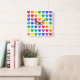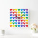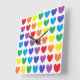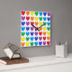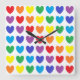 Abstract digital rows of rainbow coloured hearts against a white background. Colours including red, orange, yellow, green, blues, purple.