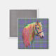 A beautiful Highland Pony in rainbow colours with a tartan background, a great gift for highland pony lovers, easy to customise too!