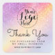 This simple and glamourous business thank you stickers is perfect for any modern businesswoman; makeup artists, hairstylists, beauticians, aestheticians, writers, real estate agents, and many more professions. It features a faux printed sparkly rainbow (purple, pink, yellow, and blue) unicorn glitter ombre gradient with black handwritten cursive script typography and a place for your logo, thank you message, and website. It's elegant, cute, girly, pretty, chic, trendy, and cool.