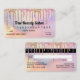 This is the perfect gift certificate business card for a trendy, stylish, girly, and modern businesswoman. This glamourous and chic design features faux printed sparkly rainbow colour glitter drips on top of a holographic iridescent foil background. The typography is an elegant cursive script with a modern serif font to match. The colour scheme includes pink, peach, blue, purple, gold, and coral. It's chic, pretty, unique, and luxurious; the perfect way to advertise your business and stylise your marketing and advertisement material for your customers, while at the same time giving them a way to gift to their friends and family.