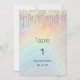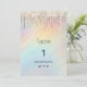 Gold glitter drips rainbow holographic wedding Table Number Invitation. Gold glitter drips cascade elegantly over a rainbow holographic backdrop, creating a stunning, light-catching effect.