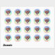 This custom sticker label features a Valentine love theme with a photograph heart frame. The background is a rainbow gradient pattern with holographic rainbow style frame. A sample photo of friends or a couple is placed in the centre.
