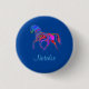 Button for little girls with a graphic rainbow horse made up of colourful waves - it comes with blue background. Great for active children .Personalise it now with her name . You can change now 1 . the blue background