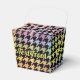 Rainbow houndstooth. Seamless pattern. Custom background colour. Custom text on both sides.