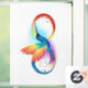Beautiful infinity tattoo with rainbow hummingbird. Rainbow bird.