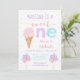 This cute invitation features an ice cream cone and balloons in pastel rainbow colours with faux gold foil confetti.