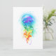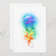 Large, iridescent, artistically drawn, bright jellyfish, with long tentacles on white, painted over with multicolored watercolor background. Rainbow jellyfish.