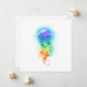 Large, iridescent, artistically drawn, bright jellyfish, with long tentacles on white, painted over with multicolored watercolor background. Rainbow jellyfish.