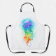 Large, iridescent, artistically drawn, bright jellyfish, with long tentacles on white, painted over with multicolored watercolor background. Rainbow jellyfish.