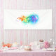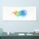 Large, iridescent, artistically drawn, bright jellyfish, with long tentacles on white, painted over with multicolored watercolor background. Rainbow jellyfish.