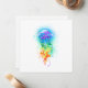 Large, iridescent, artistically drawn, bright jellyfish, with long tentacles on white, painted over with multicolored watercolor background. Rainbow jellyfish.