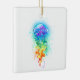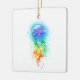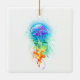 Large, iridescent, artistically drawn, bright jellyfish, with long tentacles on white, painted over with multicolored watercolor background. Rainbow jellyfish.