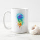 Large, iridescent, artistically drawn, bright jellyfish, with long tentacles on white, painted over with multicolored watercolor background. Rainbow jellyfish.